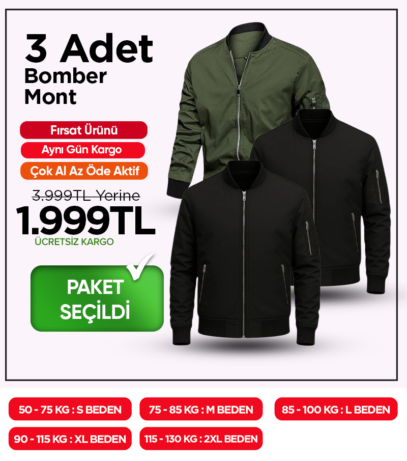 3 Adet Bomber Mont ( 2xSİYAH - 1xHAKİ )